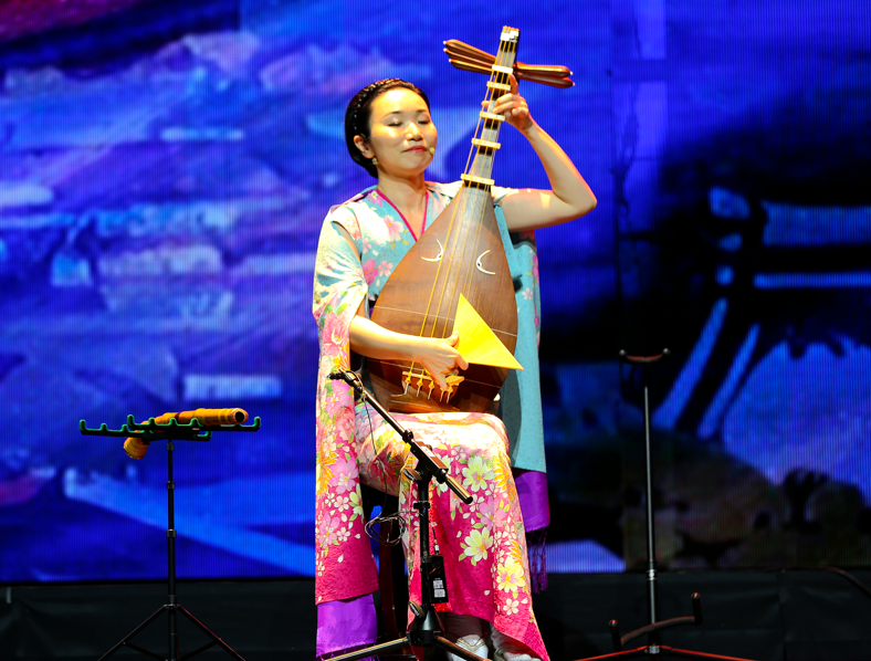 ·日本琵琶名家长须与佳演奏《一衣带水·祇园精舍》。(库车市融媒体中心 蔡蔬 / 摄)