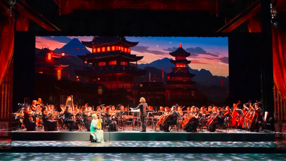 第二乐章名为“欢乐丝路”,来自世界各地的音乐家们共同演绎跨越文明的交响。日本琵琶名家长须与佳献上《一衣带水·祇园精舍》,请观众聆听盛唐遗韵东渡日本的悠远回响;西班牙吉他大师荷西·路易斯·莫利亚斯与方锦龙联袂呈现《阿尔罕布拉宫的回忆》,东西方文明在琴弦间深情对话,唤醒旧日遗存的情愫;阿联酋乌德琴演奏家纳瑟尔·沙玛携手新疆青年打击乐手伊卜拉伊木·巴拉提,带来《秘境中东·彩色》,引领听众随着音乐的律动,从西域绿洲漫游至神秘的阿拉伯世界。音乐是跨越语言和文化的桥梁,在这一刻,音符飘扬,世界共享。