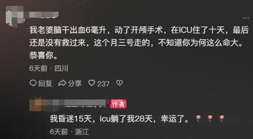 他还提醒网友们要保重身体,表示自己在上海进行了康复治疗,目前花费约50万元。他已经不再从事程序员工作,正在贵州游玩。吴先生在社交平台发长文详细讲述了发病经过和现状,他提到在ICU待了28天,后来又去康复医院待了70多天,回家后也一直在进行康复和锻炼,现在已经恢复了大约70%,但可能无法完全康复。他之前在一家创业型公司工作,面临裁员压力时精神压力很大。生病后失去了收入来源,家庭经济压力增大,女儿还小,他也在考虑如何回归社会挣钱。现在选择做自媒体是一种尝试。他表示,现在更看重让自己开心,活得自由一点。