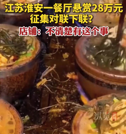 4月26日,有网友在社交平台上发布江苏淮安顽皮姥爷吃货铺以“管饱只要八块五”为上联,对外悬赏28万元征集对联下联。4月27日上午,记者联系到该店铺,店员告诉记者,问了经理,不清楚有这个事情。