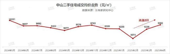 乐有家研究中心数据显示,在深中通道开通当月,即2024年6月,中山二手住宅成交均价为9657元/平米。如今,深中通道开通超10个月,截至2025年4月23日,中山二手住宅成交均价为9802元/平米,较2024年6月有所上涨。