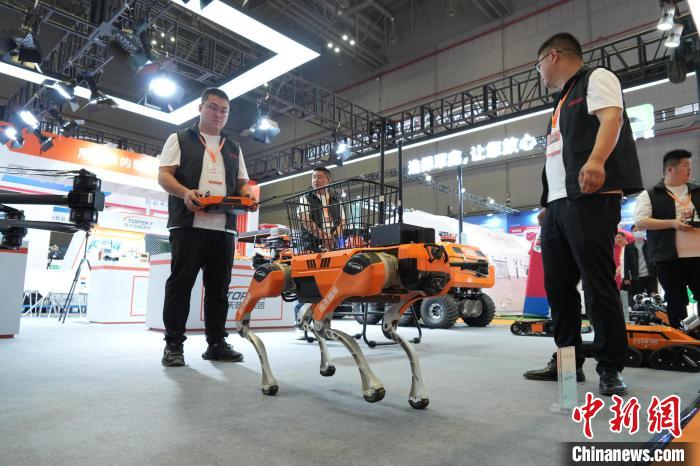 工作人员展示应急机器狗。中新网记者 殷立勤 摄