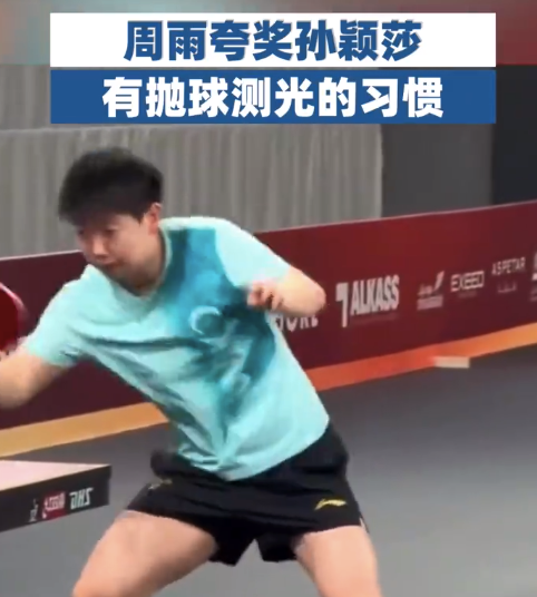 周雨回应称:对此大家不用过于担心,国乒成都封闭训练时已经进行了红球台适应训练。而且莎莎也有一个好习惯,每到一边场地的时候,都会把球抛起来测试光线,很多运动员也都有这个习惯。