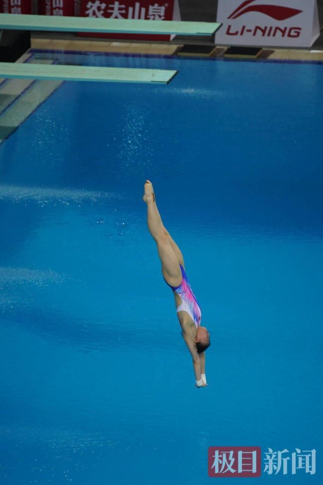 决赛共有12名选手参加,陈芋汐最后一位登场。观众为她送上了热烈的欢呼声,并举起了她的海报,她微笑着向观众挥手致意。比赛开始后,陈芋汐第一跳便以82.50分占据首位。随后几跳她表现稳定,一路领先。第五跳更是跳出了全场唯一超过90分的成绩——91.2分。最终,陈芋汐以总分413.85分夺得冠军,陕西选手崔家溪以387.45分获得亚军,广东选手谢佩铃以373.30分获得季军。