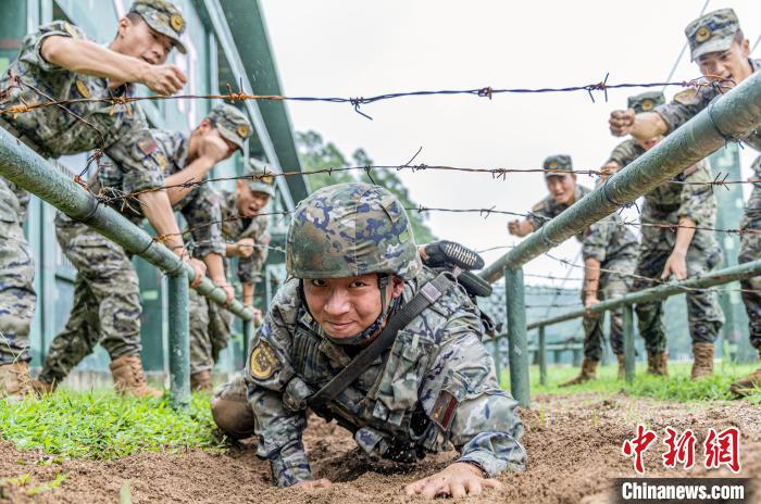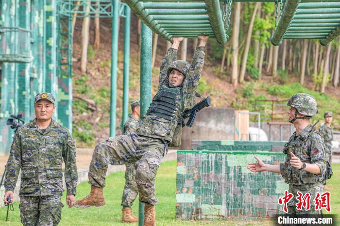 图为武警官兵正在进行抓绳上训练。刘明 摄