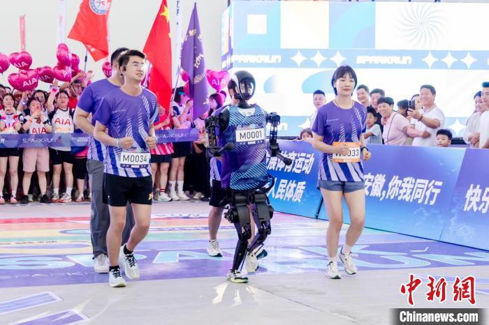 中新网合肥6月11日电(记者 张俊)人形机器人与人类选手并肩奔跑,按摩机器人用机械臂为选手缓解疲惫。6月10日晚,2025 SPARK RUN追光夜跑在合肥骆岗公园举行,机器人与体育赛事深度融合互动成为全场焦点。