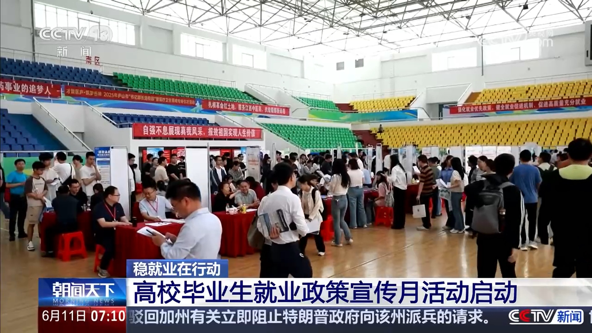央视网消息:当前,正值高校毕业生离校前促就业关键冲刺期,6月10日,教育部启动2025年高校毕业生就业政策宣传月活动,活动主题为“政策护航 加力扩岗”,时间为2025年6月至7月。