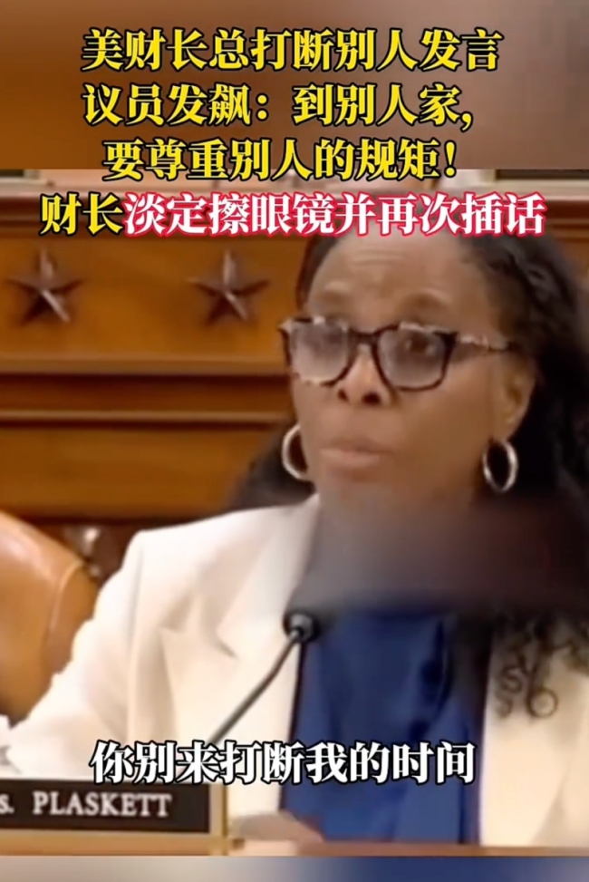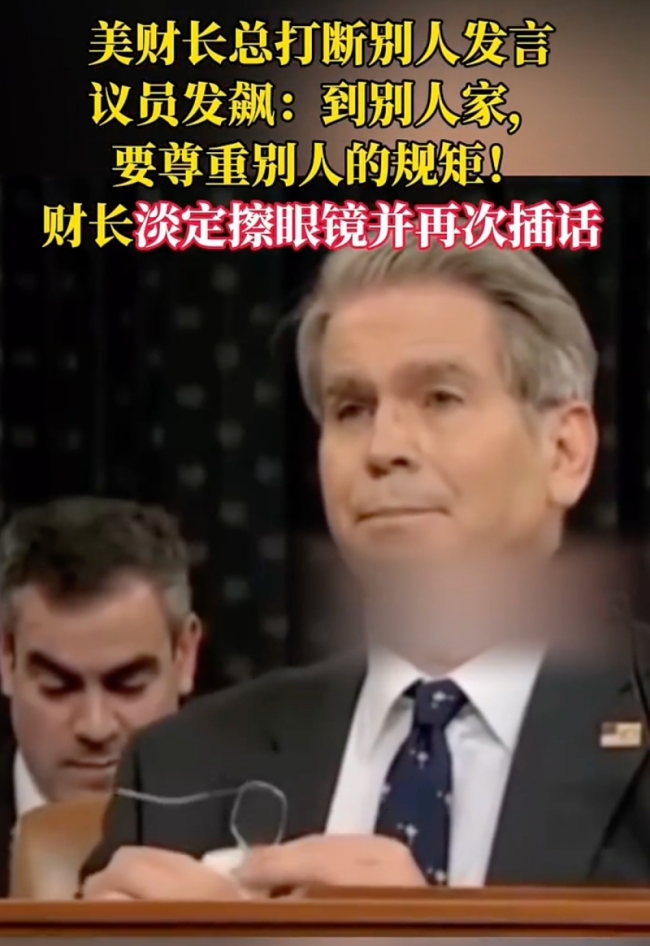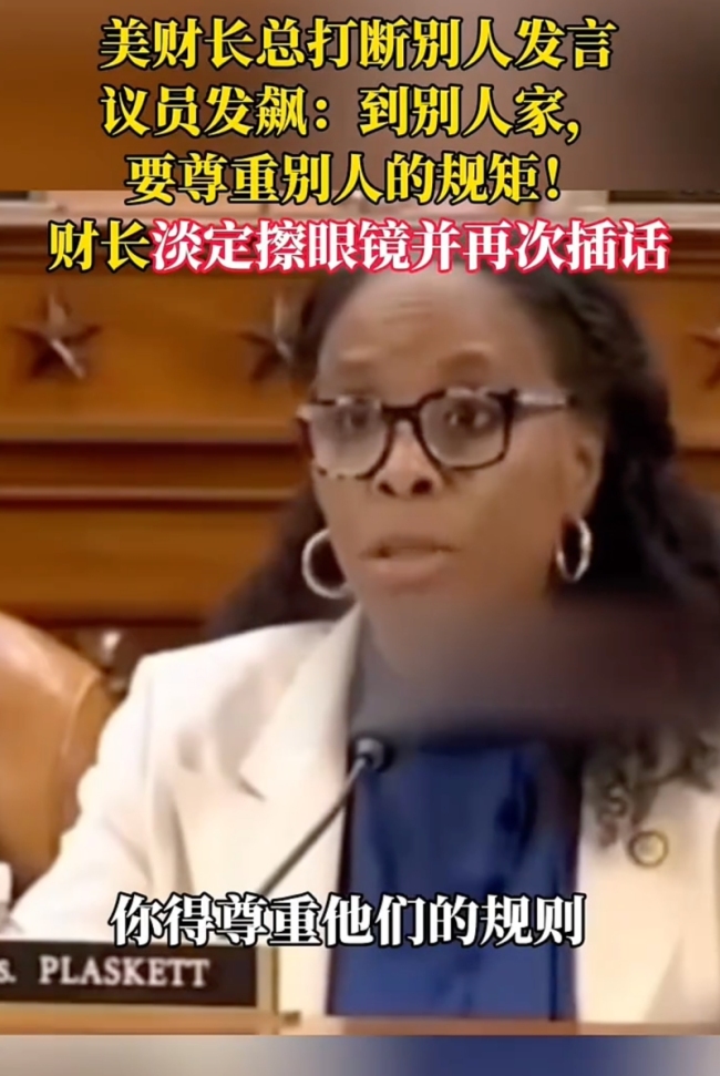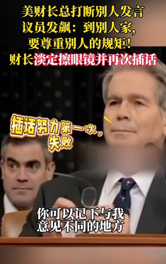 美财长总打断别人发言 议员发飙。美财长总打断别人发言,议员发飙,财长淡定擦眼镜并再次插话!