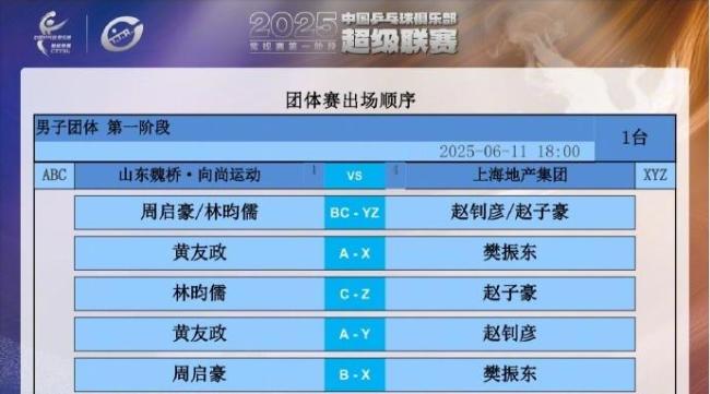 6月11日,2025乒超第一阶段山东魏桥对阵上海地产集团的比赛中,樊振东以3:1战胜黄友政,取得乒超七连胜。比赛具体比分为11-8、11-8、10-12、11-4。