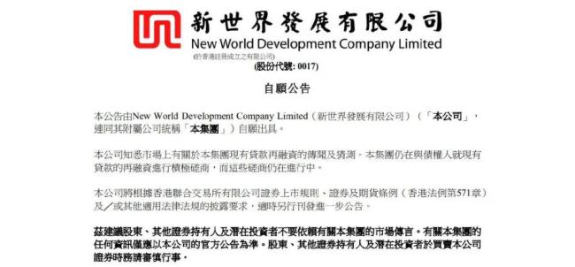 香港郑家纯家族静待875亿港元救命钱 债务重组迫在眉睫!香港豪门郑家纯家族正尽力解决债务问题。6月23日,新世界发展发布公告称,正在与债权人就现有贷款的再融资进行积极磋商。月初有媒体报道称,新世界即将达成一项高达875亿港元的贷款再融资协议,最新公告意在释放积极信号。
