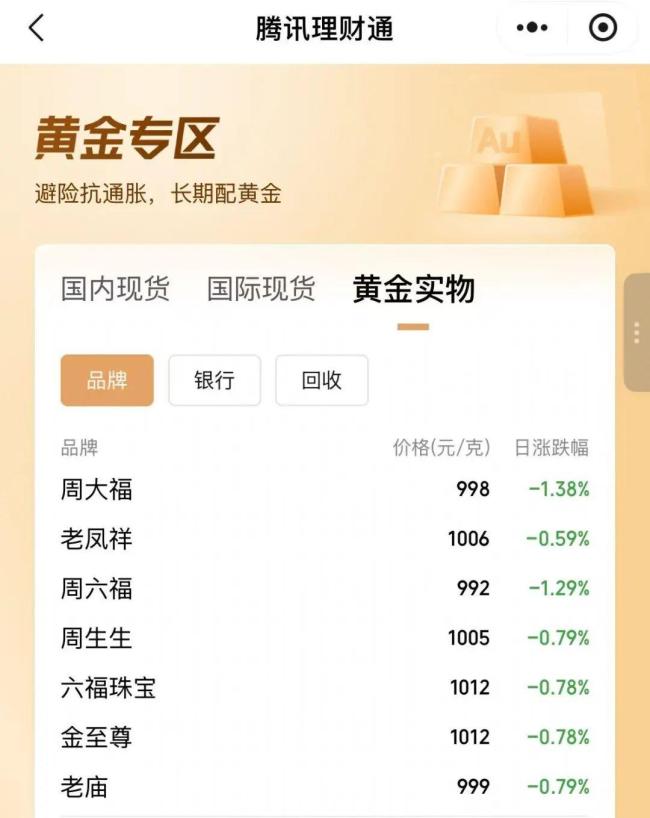 25日,国内金饰价格普遍下跌,单克价格纷纷降至千元附近。周大福的足金价格为998元/克,比前一日下降了14元;老庙黄金的价格为999元/克,每克下降了8元;老凤祥的价格为1006元/克,每克减少了6元;周生生的金饰价格为1005元/克,每克也下降了8元。