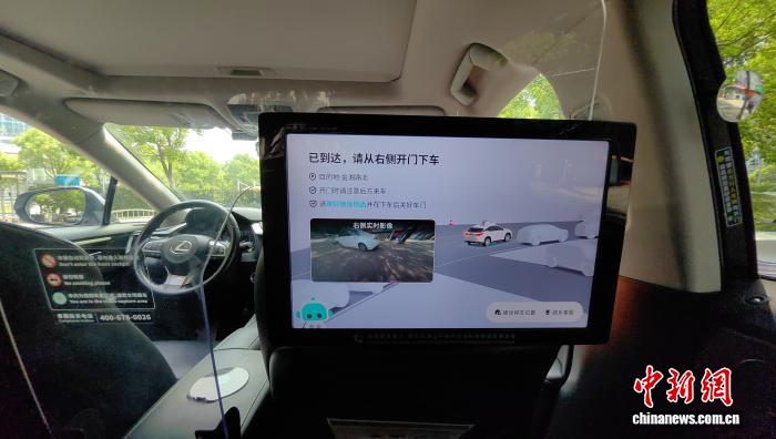 8月4日,在上海浦东金桥,无人驾驶出租车正在行驶运营,车内显示屏实时提示乘坐信息。范宇斌 摄