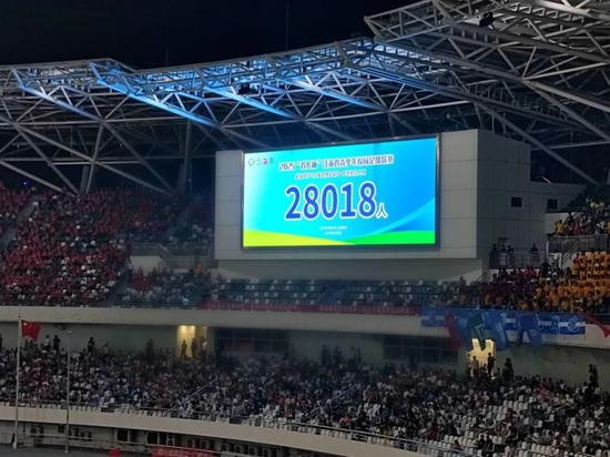 江苏省青少年校园足球联赛比赛现场电子屏。来源:苏州教育