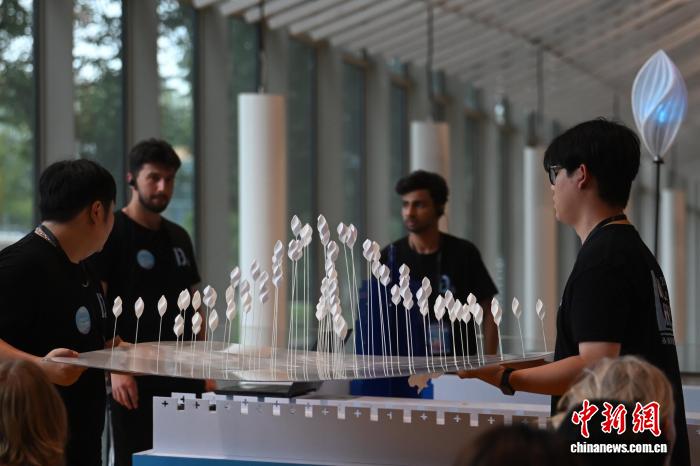 图为参赛选手展示他们的作品。中新社记者 泱波 摄