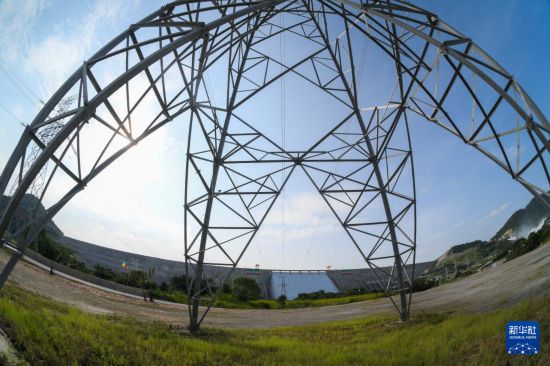 这是9月9日在埃塞俄比亚本尚古勒-古马兹州拍摄的“复兴大坝”的输电线路铁塔。新华社发(迈克尔·特韦尔德摄)