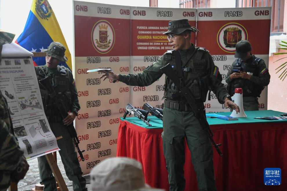 9月20日,在委内瑞拉首都加拉加斯,武装部队人员向民兵和社区居民讲授作战知识。新华社发(马科斯·萨尔加多摄)
