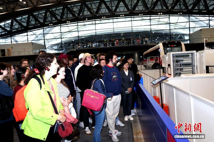图为德国留学生在观摩轨道车辆技术比赛现场。王中举 摄