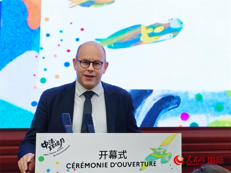 法国驻华使馆文化、教育与科学事务公使衔参赞艾文鸿介绍第十二届中法环境月活动。人民网 李慧妍摄