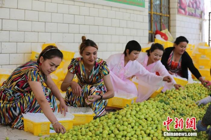 库车市融媒体中心供图当地民众展示小白杏。库车市融媒体中心供图
