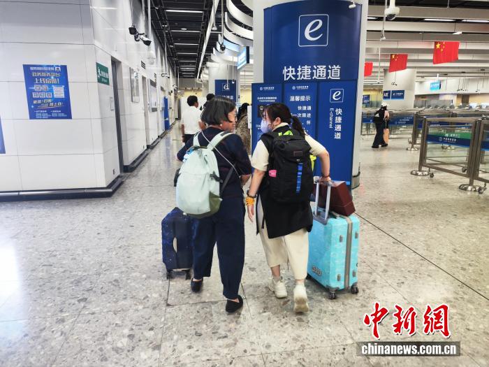 香港西九龙站,“满载而归”的旅客正在出站。中新网 刘越 摄