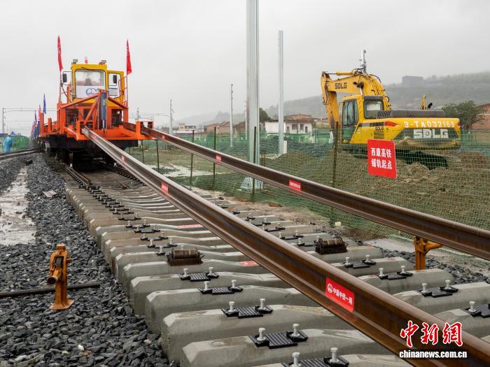 图为铺轨现场。刘盼利 摄