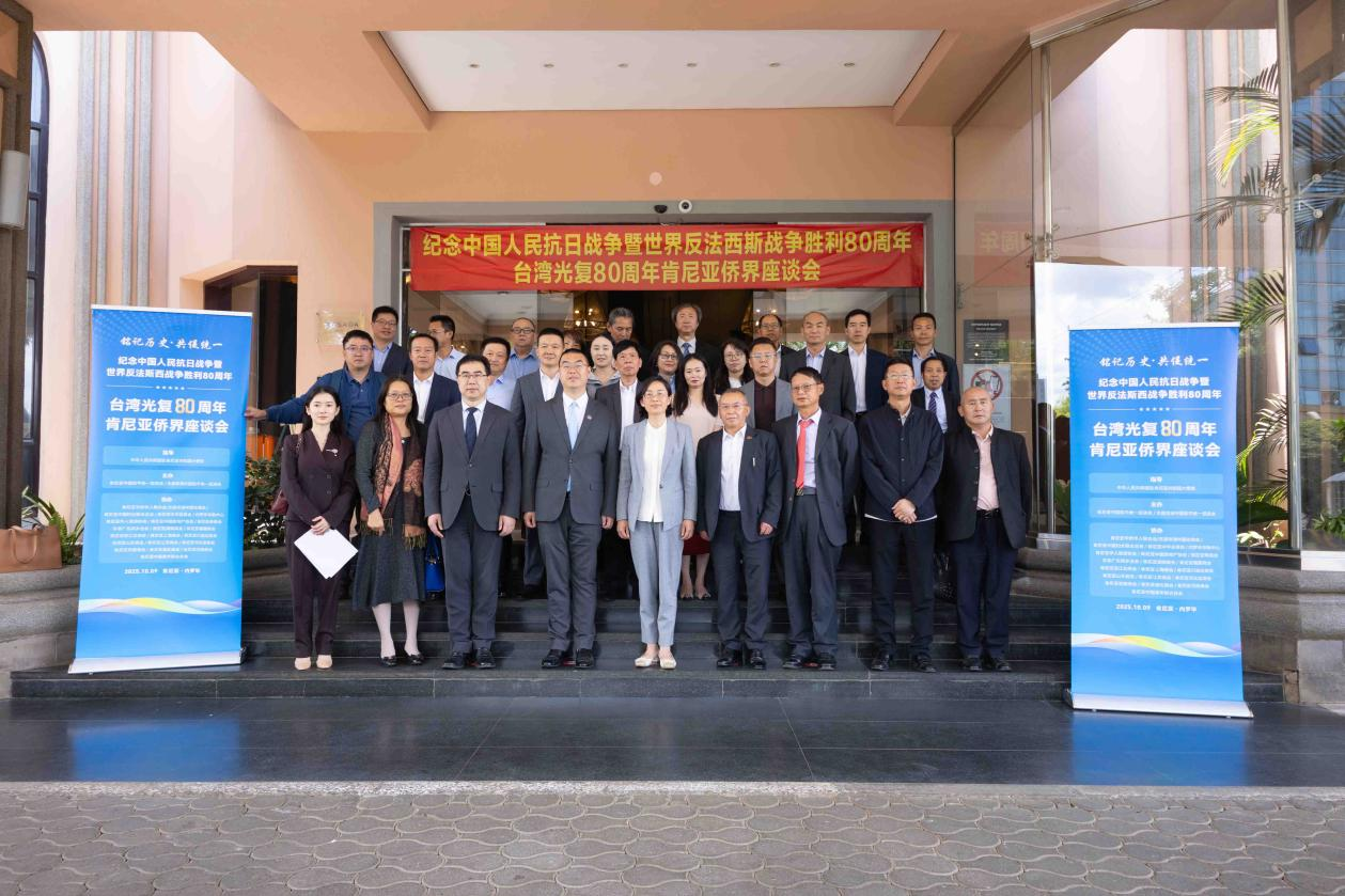 人民网内罗毕10月10日电 (记者黄炜鑫)肯尼亚中国和平统一促进会和东部非洲中国和平统一促进会9日在肯尼亚首都内罗毕联合举办纪念中国人民抗日战争暨世界反法西斯战争胜利80周年、纪念台湾光复80周年座谈会。