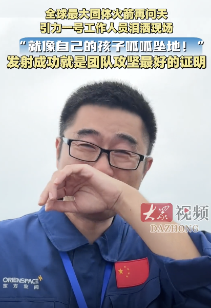 海上火箭发射成功一瞬工作人员哭了。10月11日上午10时20分,橘红色的火焰磅礴喷发,推动火箭拔地而起。全球最大固体运载火箭“引力一号”(遥二)在山东海阳附近海域发射成功。“胜利”消息传来,在发射现场亲眼见证火箭穿云破雾问天的东方空间品牌总监王帆喜极而泣,忍不住流下激动的泪水:“真就像自己孩子出生一样。最后攻坚阶段持续了数周,各个团队加班加点,确保万无一失。我的心情跟我们团队每一个人都是一样的。这枚火箭发射凝聚了大家一年多的心血,每一个岗位都没有掉链子,今天发射圆满成功就是最好的证明。”