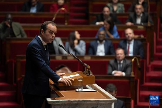 10月16日,在位于法国巴黎的国民议会,法国总理勒科尔尼在不信任动议投票前的辩论环节发言。新华社发(奥雷利安·莫里萨尔摄)
