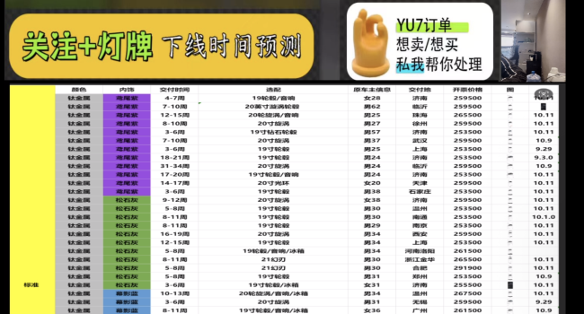 值得注意的是,今年6月YU7刚上市时创造了“3分钟大定20万台,18小时锁单24万台”的行业奇迹。当时,巨大的市场需求与漫长的交付周期形成了套利空间。