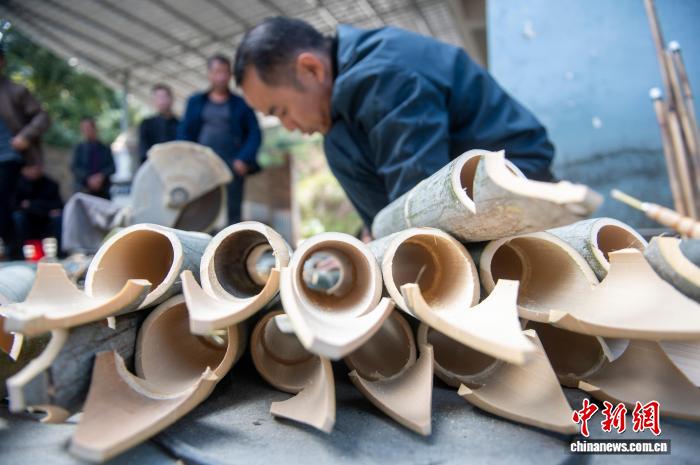 贵州侗寨芦笙制作忙