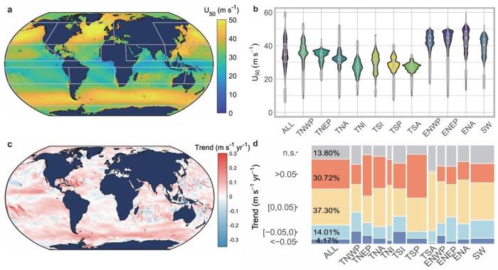 在本项研究中,论文共同通讯作者、南方科技大学教授曾振中和同事及合作者一起,分析了全球海洋1940年至2023年的每小时风速数据。他们发现,全球超过60%的沿海区域呈现极端风速显著上升的趋势,并常与全球变暖下的天气系统变化相关。