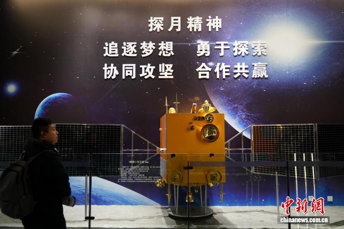 11月5日,黑龙江哈尔滨,观众在哈工大航天馆内参观嫦娥二号卫星模型。中新社记者 赵宇航 摄