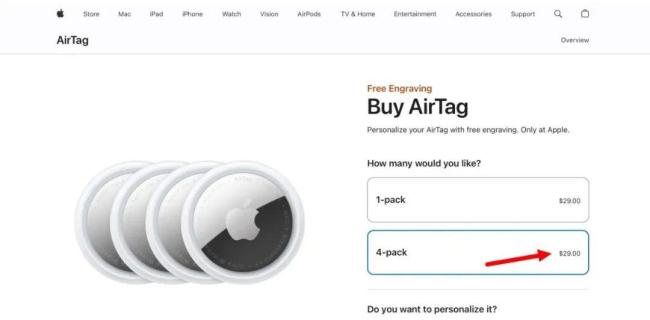 苹果美国官网现失误 罕见价格乌龙引发抢购潮!苹果官网近日在美国出现了一次罕见的价格错误,原价99美元的四件装AirTag被标为29美元,相当于买一送三。消息迅速传播后,大量消费者涌入官网抢购,导致发货时间被推迟到12月。然而,这次价格失误仅限于美国官网,其他地区如中国、日本和欧洲的价格均正常。
