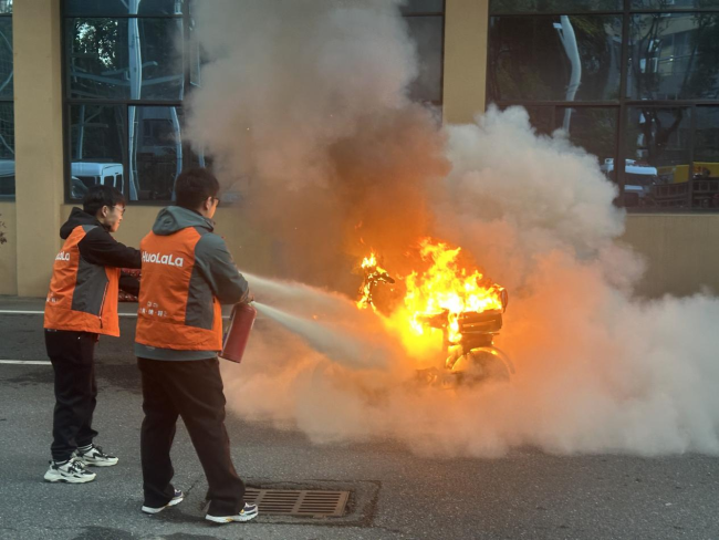 区别于传统单向灌输式培训,货拉拉与应急部门的这次直播活动打造了三维立体课堂。活动现场邀请应急安全专家全程伴随式讲解,深度讲解车辆防火核心要点、货物防火技巧、灭火器使用操作,并动画演示车辆着火应急处置流程。司机代表在应急安全专家的指导下,通过场景化实操,从灭火器规范使用、电动车和燃油车起火应急处置到急救技能操作,在高度仿真的环境中完成了全流程演练。