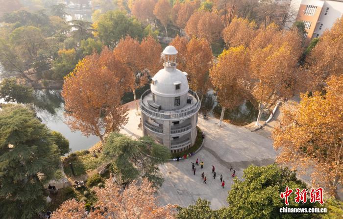 图为航拍隐于城市中的张公亭。(无人机图片)中新社记者 张畅 摄