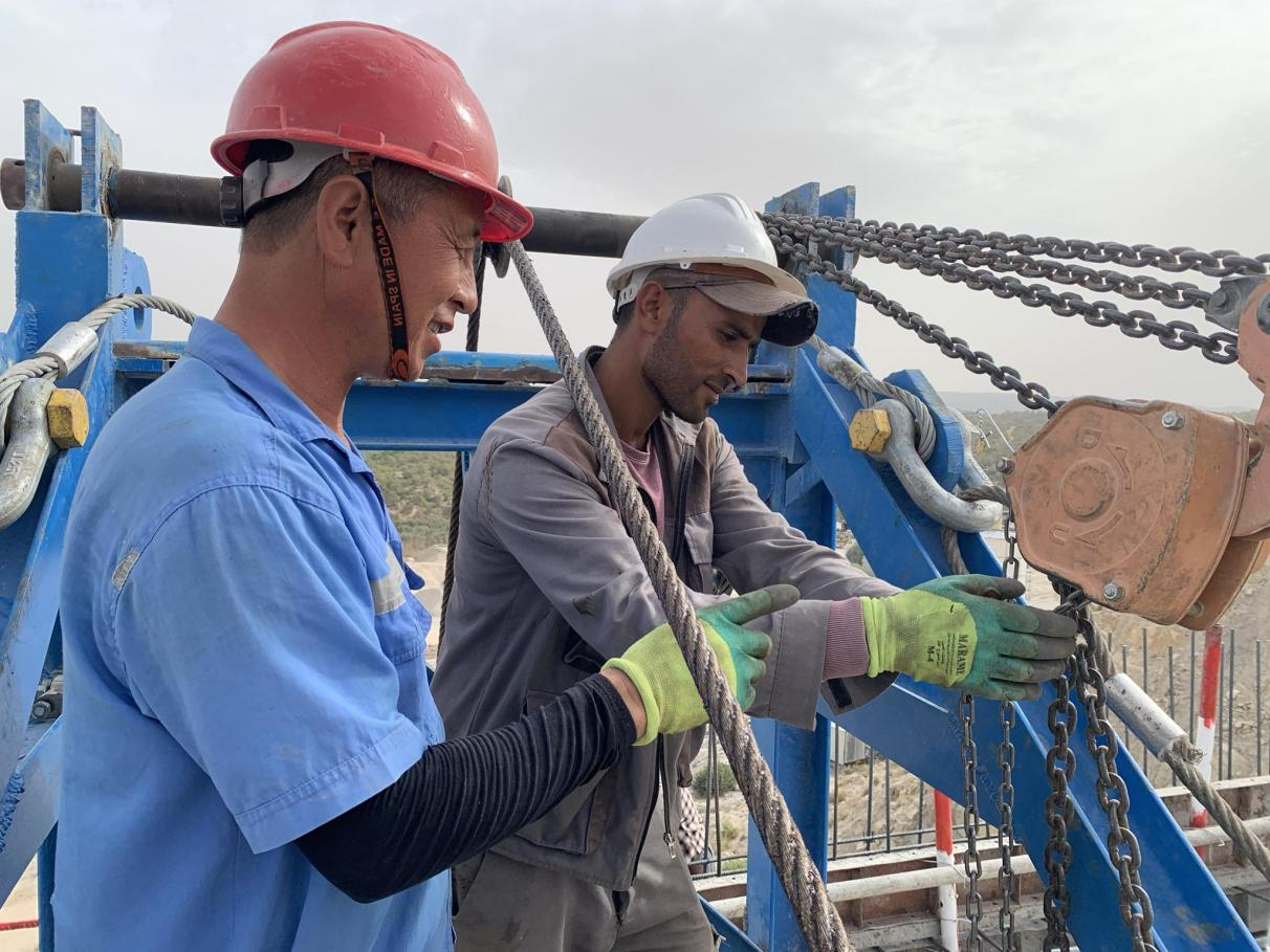 一手握着防护面罩,一手拿着电焊枪,两名突尼斯工人在熟练地焊接钢筋。“我们是兄弟。我是7年前到项目工作,我哥哥是4年前来这里的。”电焊工苏丹尼说,到项目之后,中国师傅手把手指导各类电焊技术,他的技能不断提高,顺利通过了电焊技术考核。“项目规模大,实操机会也多,这份工作不仅让我们赚到钱养家,也为我们职业发展提供了更多机会。”