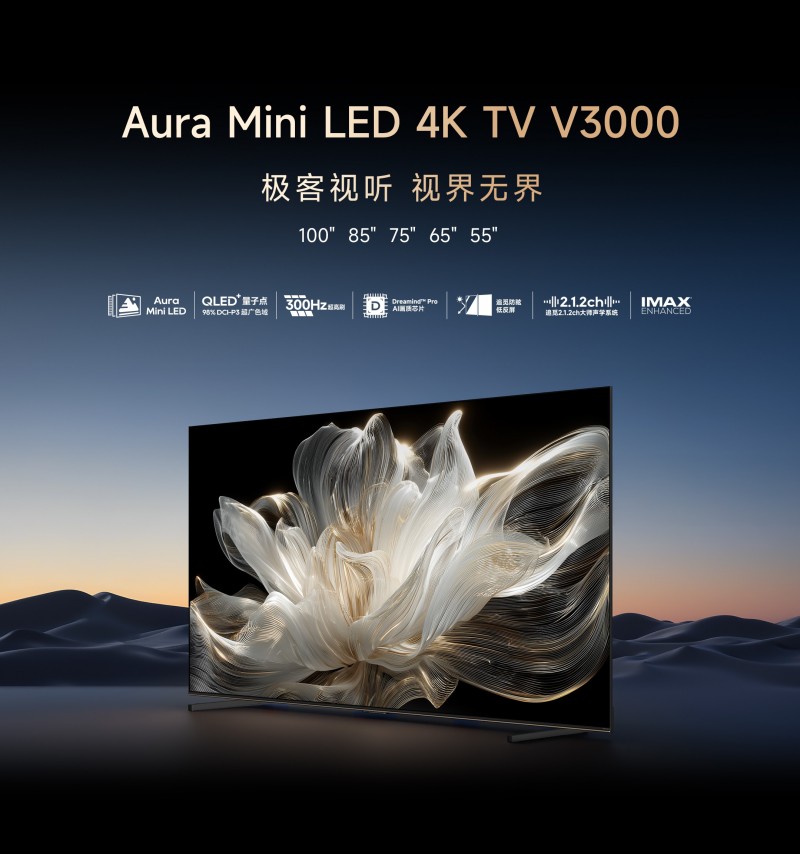 追觅AI电视V3000系列的核心优势在于其Aura Mini LED超精控光技术。这项技术巧妙融合了QLED与Mini LED的双重优势,实现了1+1>2的视觉效果。量子点技术负责“色彩体积”,通过量子点转换层呈现更纯净的红绿蓝三原色;而Mini LED则掌控“明暗动态”,通过数千个独立控光分区让亮部更璀璨、暗部更纯粹。