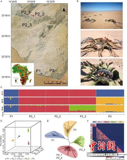 论文第一作者、中国科学院植物研究所博士后孙静静介绍说,为探讨百岁兰的遗传分化和性别决定机制,研究团队利用已经测序的百岁兰基因组,对该物种分布于纳米布沙漠南端地理距离很近的5个群体130个个体进行全基因组重测序,并开展群体基因组比较和环境因子等综合分析。