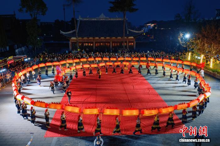 图为板凳龙穿梭于城厢古城。成都市青白江区融媒体中心 供图