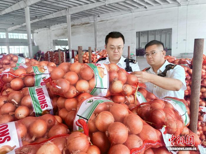 中新网银川9月18日电 (记者 李佩珊)记者18日从银川海关获悉,由宁夏一食品公司在银川综合保税区加工的56吨保鲜洋葱,经过银川河东机场海关工作人员查检后,现已踏上出口至泰国和马来西亚的旅程,这是宁夏首次向这两个