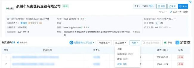福建省首家医药连锁企业泉州东南医药连锁有限公司,门店数量已缩减约64%。