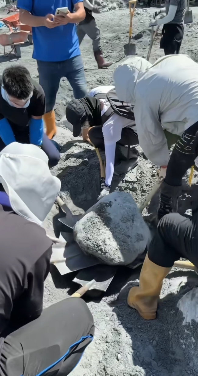 花莲救灾现场6人铲1块石头。台湾花莲现场6个人铲一块石头,结果终于把石头竖起来。...