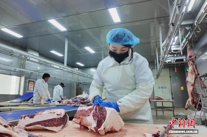 中新网固原11月24日电 (记者 李佩珊)11月24日,记者走进宁夏固原市隆德县一家企业的肉牛分割加工车间,只见工人娴熟地将肉牛分割成二十多个部位,预冷、打包等工序一气呵成。该企业收购屠宰了县内肉牛2360头,带动养