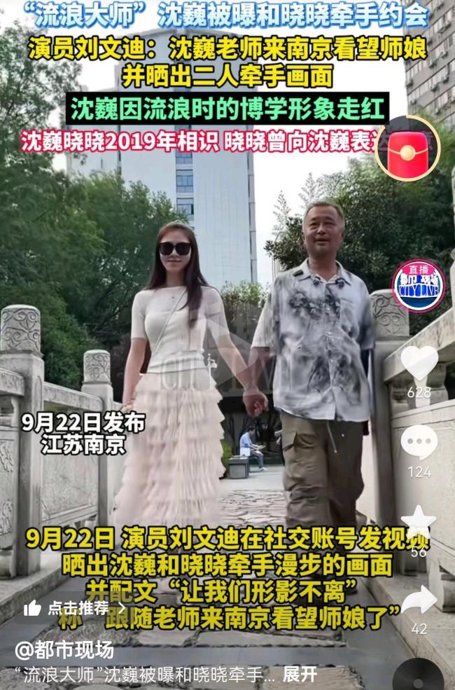 9月22日,有消息称“流浪大师”沈巍和晓晓在南京牵手约会,这一消息得到了沈巍的大弟子刘文迪的证实,并随同前往。许多网友称赞他们是“灵魂伴侣”