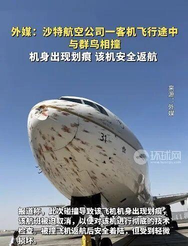 • 沙特一波音客机飞行途中撞鸟 航班取消进行检查